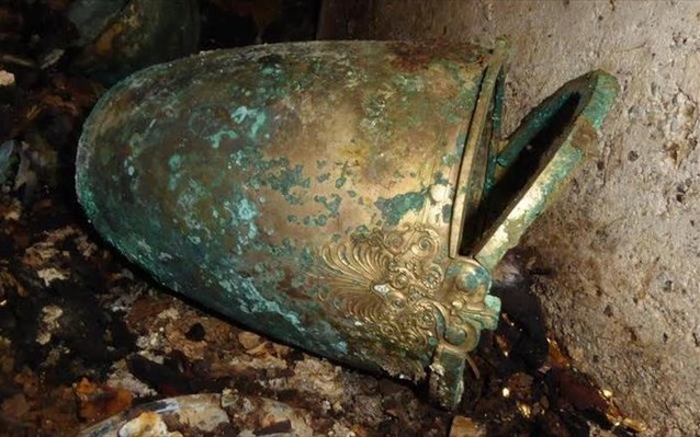 Kottaridi also posted two images from the tomb, one of them depicting a decorated vessel used to mix wine and water at the symposia.